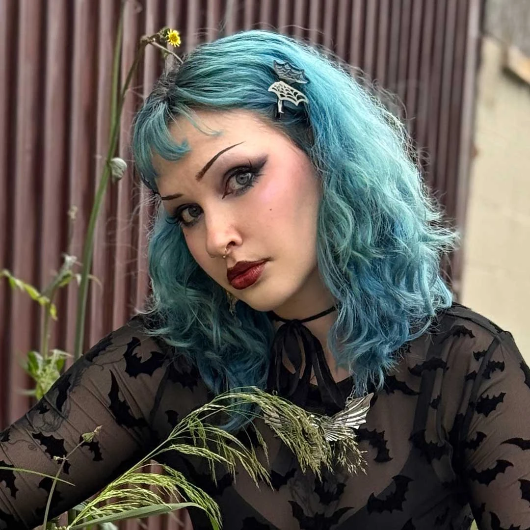 Elevate your vamp hair style with Kreepsville’s Bat Spring Web Wing Clips. With wings on spring these metal flying bats will flap their wings with your movements to turn any look into a hair-raising masterpiece. The vintage inspired design features a durable alligator grip clip to ensure that your gothic style stays undying. Crafted with a high-quality dark silver alloy made to last for an eternity. Sold in a set of 2. Clip size approx: 1.75″ (4.5 cm) x 1.2″ (3 cm). Designed in California.