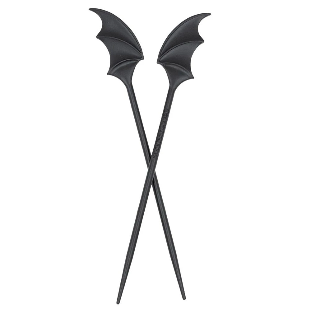 Get your bats nest under control with the Batwing Hair Sticks by Kreepsville. This vamp hair accessory has a matte black finish and is made with a durable metal to hold up your luscious locks all day long. Plus, the bat wing design is sure to give your hair a gravity defying look! Sold as a pair. Measures approx. 7.25″ L (18.5 cm) x 1″ W (2.5cm). Designed in California.