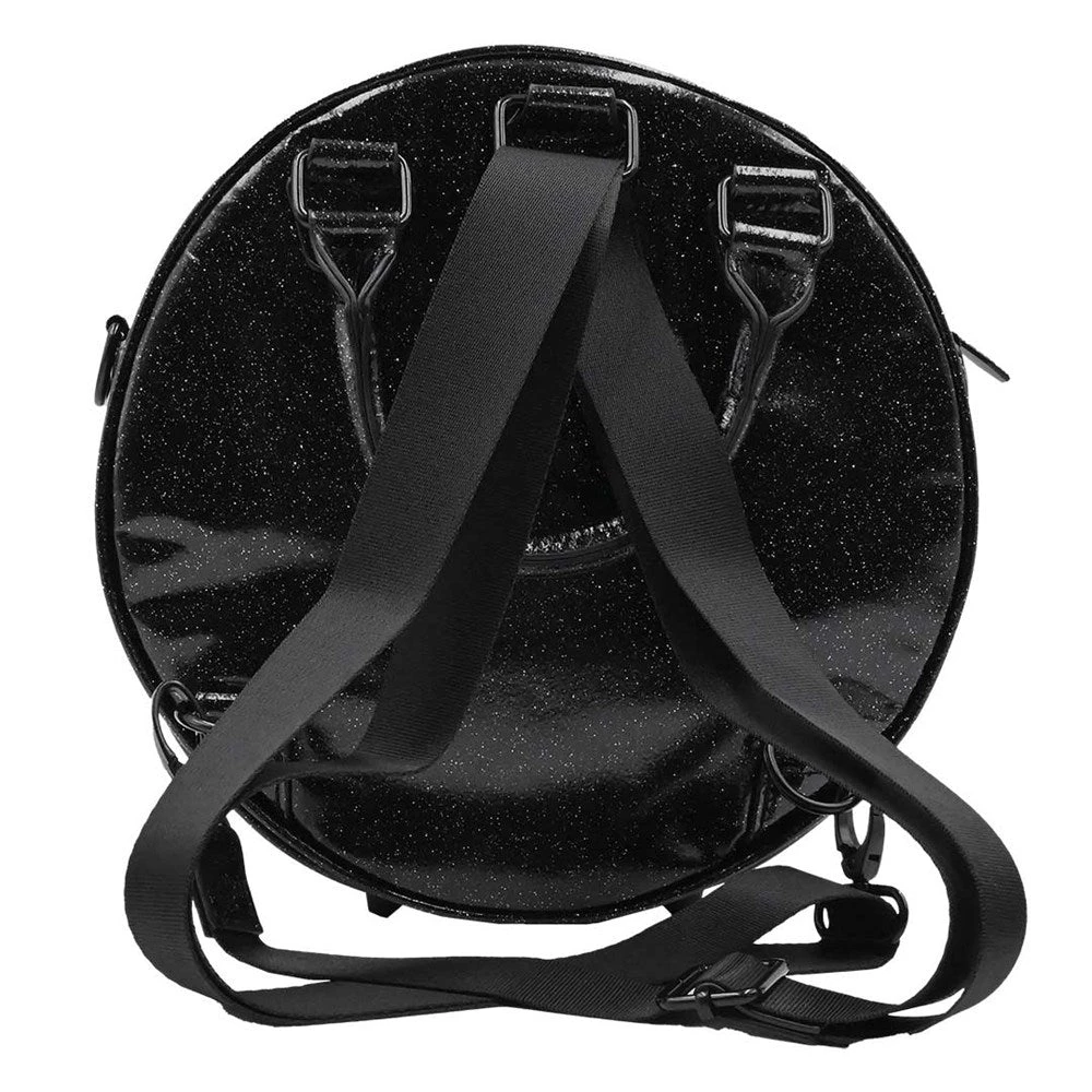 Feast your eyes on something truly unique, the Eyeball Black Glitter Backpack Purse by Kreepsville. The perfect combination of cute and creepy, this purse can take you from day to night in style. Whether you rock this multifunctional bag as a shoulder purse, a watchful backpack, or a crossbody with its adjustable 70” (177.8cm) strap, its glittery finish will catch eyes wherever you go. Plus, the iris is the perfect outer zip pocket for quick access to the items you need. The main pocket can fit all of your ghoulish needs, such as your phone, wallet, and journal, etc. with a coffin zip pull that ensures all of your items stay secure. Get yours today and ensure all eyes are on you! Approx 10″ D (25.4cm) x 4″ W (10.16cm). Designed in California, made in China.