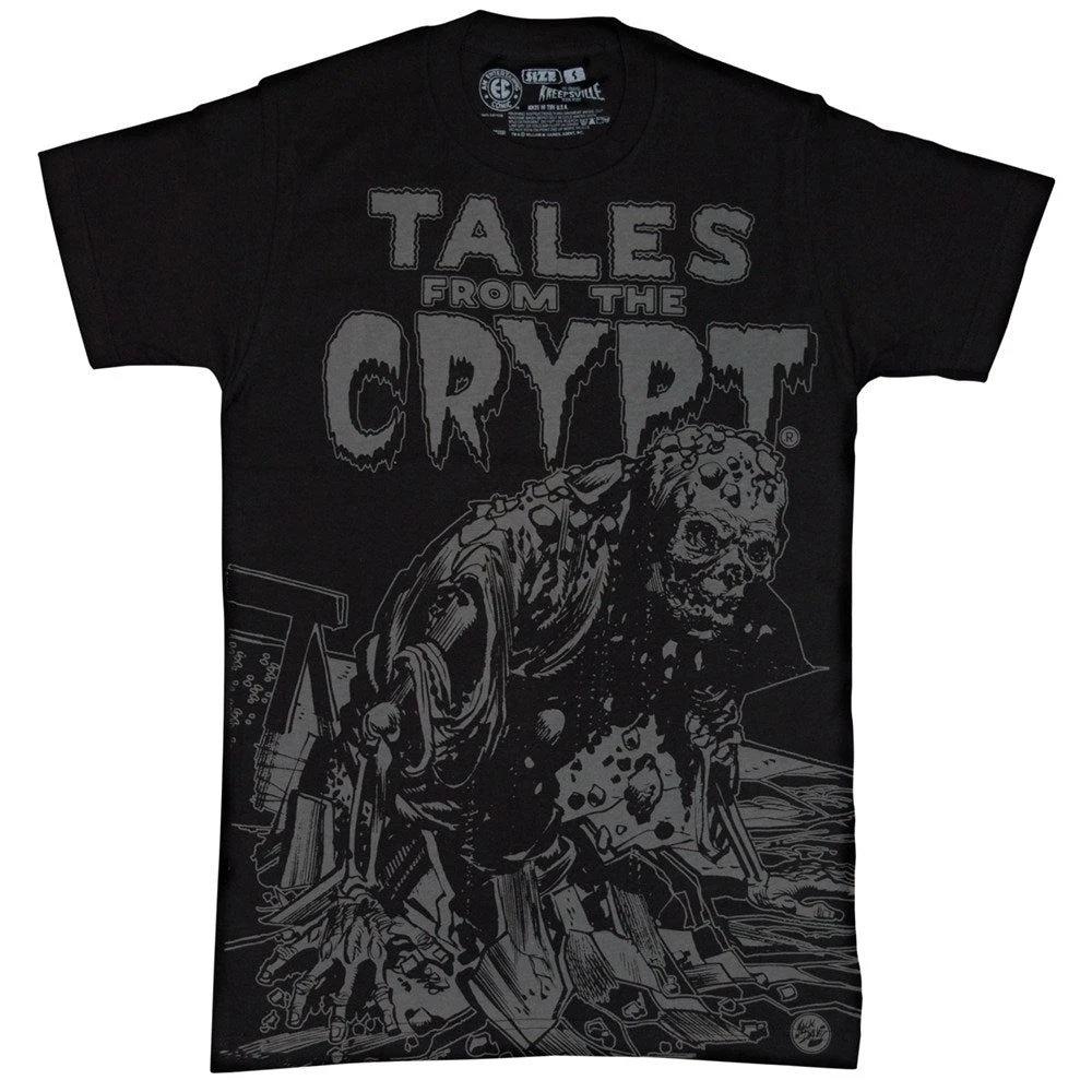 Officially licensed Tales From The Crypt Jumbo creature feature print tee featuring an all over grey zombie print on the front. Made by monsters in the USA.